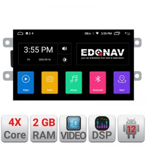 Cu sistem de operare Android 12, procesor 4xCore, Bluetooth încorporat, intrare USB, memorie internă 2GB, ecran tactil capacitiv, radio cu RDS, control comenzi volan, GPS și DSP integrate