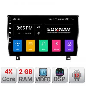 Cu sistem de operare Android 12, procesor 4xCore, Bluetooth încorporat, intrare USB, memorie internă 2GB, ecran tactil capacitiv, radio cu RDS, control comenzi volan, GPS și DSP integrate