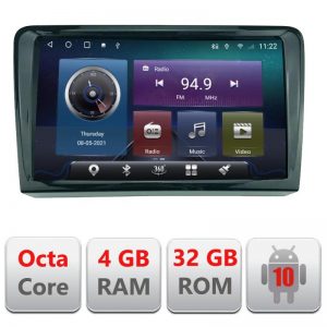 Cu sistem de operare Android 12, procesor 4xCore, Bluetooth încorporat, intrare USB, memorie internă 2GB, ecran tactil capacitiv, radio cu RDS, control comenzi volan, GPS și DSP integrate